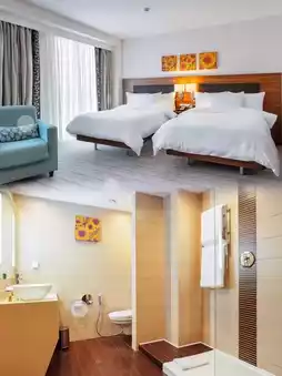 🛏️ The hotel boasts 165 elegantly appointed guest rooms, each a testament to comfort and style. Step inside, and you'll find modern amenities seamlessly blended with warm décor, creating a private retreat away from the hustle and bustle. Whether you're lounging on the plush bedding or using the ironing facilities to freshen your clothes, you'll experience the warmth and ease of home. 🛌