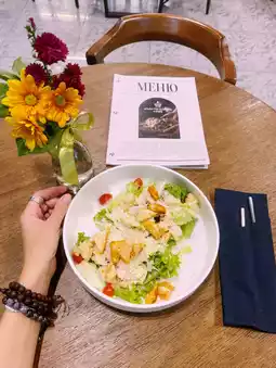 The menu offers something for everyone. Start your day with their signature Caesar salad—a perfect blend of crisp romaine lettuce, crunchy croutons, tangy dressing, and grated Parmesan cheese. For those looking for something heartier, try one of their delicious sandwiches or wraps.