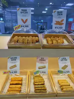 With a short amount of time before catching the train, you can enjoy a variety of options like octopus rolls, squid rolls, whole shrimp croquettes, and spicy cheese croquettes. The selection was so diverse that choosing was half the fun. Plus, everything is made and sold fresh daily, ensuring top-notch freshness :)