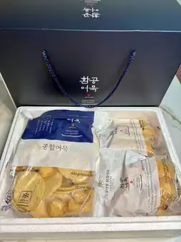 🎁 The fish cake gift sets come in four different options! The most abundant D set includes assorted fish cakes, scarf soup, golden porridge, round fish cakes, burdock fish cakes, squid-flavored fried fish cakes, sundae fish cakes, dumpling fish cakes, and perilla leaf fish cakes.