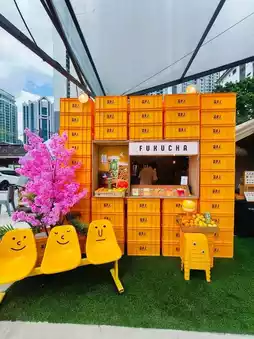 Exploring the market was such a treat. From traditional cheongsams to unique handmade crafts, every stall had something interesting to offer. I couldn’t resist stopping by the Fukucha stall for a refreshing drink—its playful setup and cheerful vibes instantly drew me in.
