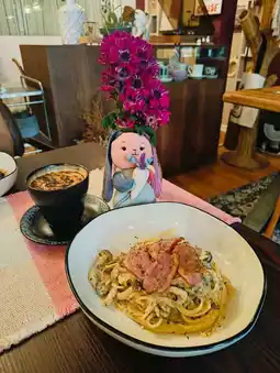 I ordered the Smoke Duck Carbonara Spaghetti, and it was heavenly! The pasta was creamy, with a perfect balance of flavors, and the smoked duck added a rich, savory touch that made every bite unforgettable. It paired wonderfully with the café's calm and inviting vibe.