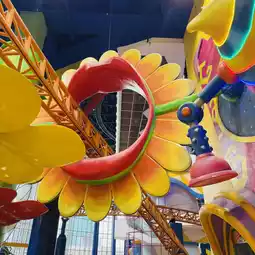 The creative attention to detail in the props—like the oversized pumpkins and vines—makes it a feast for the eyes. My personal favorite? The bright orange roller coaster that twists and turns through the vibrant park. For families, couples, or groups of friends, this park is a perfect day out!