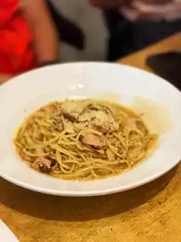 Had this during our dinner and order some foods such as aglio-olio spaghetti, wild mushroom soup, tomato and cheese pizza, chicken chop and also garlic bread. Overall we fairly like the food but impressed with the service.