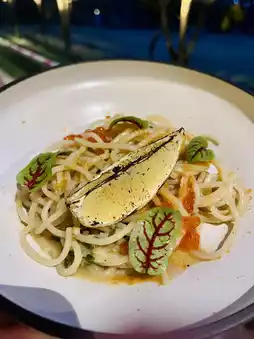 I ordered their Bottarga Spaghetti, char-grilled pineapple chicken, rosemary focaccia. For drinks, I ordered Boco Blizz and Bamboo coolers. This is a very cool chilling restaurant tucked in greens worth visiting.