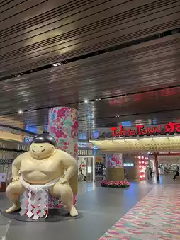 Tokyo Town is a vibrant Japanese precinct located on Level 2 (Orange Zone) of Pavilion Bukit Jalil in Kuala Lumpur. Launched on October 19, 2022, it celebrates Japanese food, retail, arts, and culture. Upon entering, visitors are greeted by traditional Japanese architecture, including a grand entrance with sumo wrestler sculptures and a “Nakamise” shopping street adorned with lanterns and cherry blossoms.