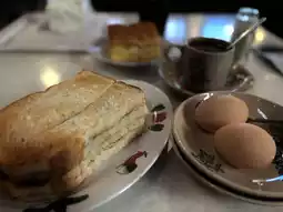 When you come to Kuala Lumpur, you must try Ho Kow Hainan Tea Shop’s famous half-boiled eggs with kaya toast. Coffee and Hainan tea are a must-order, but you can choose to take one cup to go and enjoy it while walking. I thought arriving at 7 AM would mean easy seating, but it was already packed with tourists. They also sell Ho Kow Hainan tea bags inside, but the price is a bit high. I bought two packs, each about 24 MYR, roughly between 175-180 TWD.