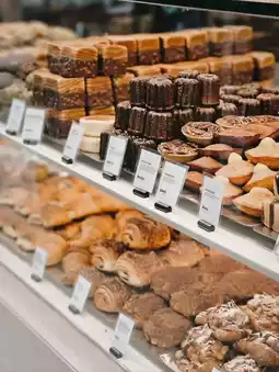 The famous bakery moved to a new location in the high-end area. The store was upgraded to a two-story building. There was a long queue outside, and there was a awning to shade the sun, which made the alley outside have the atmosphere of a Western street. After entering the store, all the pastries were dazzling, which really made people have difficulty choosing. There were so many that they wanted to come. Behind the counter was the bakery, and all the desserts and breads were freshly baked.