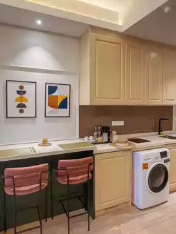 Even the simplest studio room is 35 square meters, and the room includes a small kitchen with a washer and dryer, as well as a dining space😊
