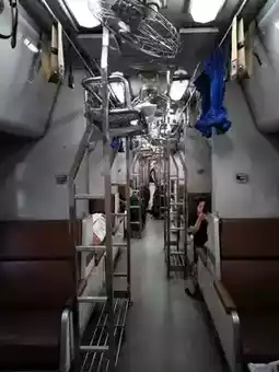 The beds are set up in the same direction as the train’s movement, and during the day they fold up into seats.