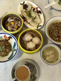 Upstairs, the vintage atmosphere with small, cozy tables sets the mood. The dim sum menu isn’t extensive, but every bite is packed with flavor – large Siu Mai with dense filling, fresh and bouncy Har Gao shrimp dumplings, and Radish Cake fried to a crispy golden brown, paired with spicy grilled shrimp chili sauce! Prices are affordable, and locals line up early in the morning because this gem is not to be missed.