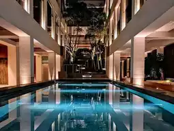 The semi-outdoor pool area is designed to be very Instagram-worthy, with a resort-like atmosphere that is very relaxing and comfortable. The night view is especially stunning.