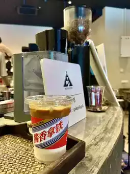 The menu focuses on desserts — from beautifully crafted cakes to crispy waffles — making it an ideal stop for a chill afternoon. One standout is their signature Moutai Latte, a bold and creative coffee blend with a hint of the famous Chinese liquor, for those who want something a little different.