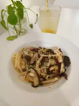 I had the mushrooms aglio olio and yuzu sparkling, and wow—it was such a comforting combo. The flavors were rich but balanced, and the drink was like a fizzy citrus hug. I’ll be back for sure to try their cakes and coffee next time!