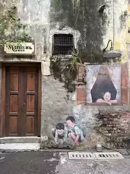 Kwai Chai Hong in Malaysia features unique murals that recreate the alleyway life of the past