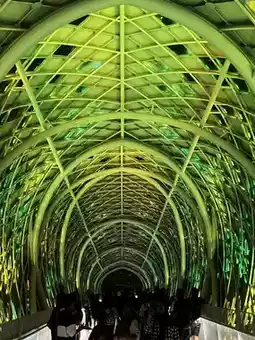 This bridge is a pedestrian connection between Kampung Baru and the KLCC area, where the iconic Petronas Twin Towers stand. You can walk across comfortably without taking a detour by car. The best part is the bridge's design, shaped like a flower or fish scales, with bright colors and color-changing lights at night that are stunning—perfect for endless photo opportunities.