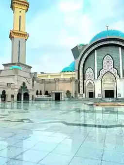 Masjid Wilayah is one of the most beautiful mosques in KL. With its blue domes and wide open spaces, it feels calm and welcoming the moment you enter. The design is inspired by Ottoman-style mosques, and the details inside are just stunning.