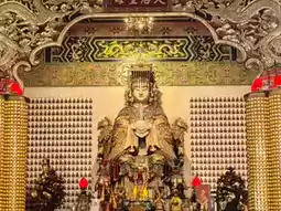 Inside the temple, there is a main worship hall for paying respects to the Goddess Tian Hou, Goddess Guan Yin, and other deities. Outside, there is a small Chinese garden, a koi pond, and a viewing terrace that offers a panoramic view of Kuala Lumpur.