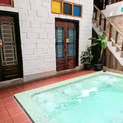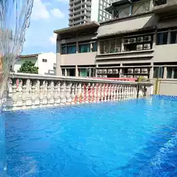 The almost Mediterranean façade of the hotel makes it a visual paradox that does not betray its charm. The guest is greeted with steps leading up to a fountain, and the outdoor seating area of the restaurant. At the check-in, a grandfather clock hints at Bestow's antiquated side. And then, the compact, yet spacious wooden and tiled interior, including an indoor jacuzzi, and an antechamber with a little bookshelf and couches. Despite its compact size, the hotel manages to also fit a rooftop pool with a makeshift water curtain and a view of the city.
