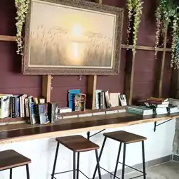 The other side of this place is a restaurant that resembles an apothecary or an herbarium, in which there are vast, towering shelves filled with plant specimens in glass jars, with handwritten tags of their scientific or common names. One might find the restaurant's well-crafted atmosphere and hearty menu enticing to both the literal and the figurative experiential palate. One might delight in some comfort in the viscerally profound, quiet homeliness of the restaurant, reminiscent of the domestic setting of a local house, probably in the late 60s to early 80s.
