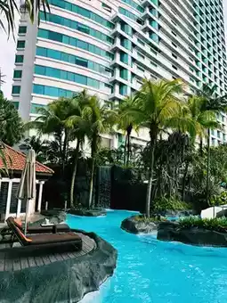 Tucked between sky-high towers, the swimming pool at Le Méridien Kuala Lumpur is a tranquil haven in the city. Sharing an expansive pool deck with Hilton KL, guests enjoy resort-style lounging with tropical landscaping, bubbling fountains, and skyline views. Whether you’re soaking up the sun, sipping cocktails poolside, or taking a dip to cool off after exploring KL, the vibe is refreshingly urban yet utterly relaxed. Ideal for couples, solo travelers, or families, this is the perfect spot to recharge in style. Don’t forget to snap a photo of the city skyline at sunset!