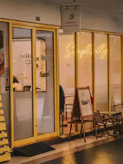 The interior is clean and simple—think neutral tones, wood finishes, and sunlight filtering through. Not overly crowded either, which makes it great for solo visits or quiet chats with a friend.