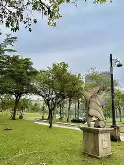 Whether you’re here for a morning run, a leisurely walk, or just to soak in the serenity, the park delivers a refreshing change of pace. Benches shaded by trees offer perfect resting spots, while children laugh and climb in the colorful playground. It’s a thoughtfully designed space that balances relaxation and recreation, surrounded by the urban skyline.