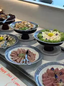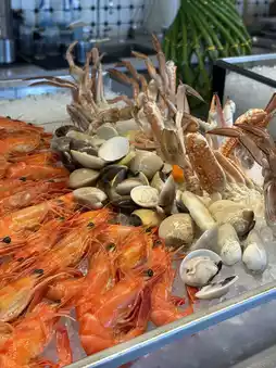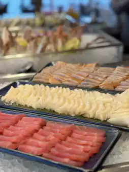 There’s also a buffet spread featuring sushi, sashimi, seafood on ice, and local favourites — perfect if you love variety. The whole setup feels relaxed yet refined, great for casual gatherings with a bit of flair.