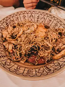 I picked my own ingredients from their display—everything from lotus root to beef slices—then had it wok-tossed with their signature mala sauce. You can customise the spice level, and I went with medium—just enough to get the tingling sensation without overpowering the flavour. The noodles were springy, and the combination of chili oil, Sichuan peppercorns, and savoury sauce made every bite addictive.