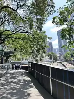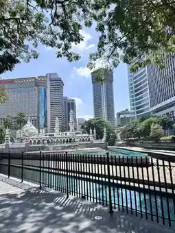 📍 Morning – Start at KLCC Park, leisurely walk under the trees with a full view of the Petronas Twin Towers