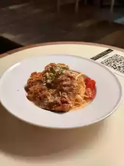 Next up is a pasta dish that looks simple but is rich in flavor. The sauce is carefully prepared, and the pasta is tender and chewy without being greasy, perfect for those wanting to try something new beyond just local dishes.