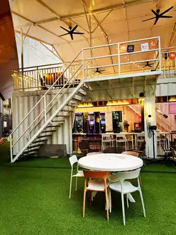 If you want to enjoy the night in Kuala Lumpur for free, "Beer Box" in the rooftop garden of LaLaport KL is a hidden gem! In an open space overlooking the skyscrapers, you can savor a cold craft beer in hand while enjoying the sparkling city night view. The skyline features skyscrapers like PNB118 and The Exchange 106, the breeze is pleasant, making it feel like an outdoor lounge.