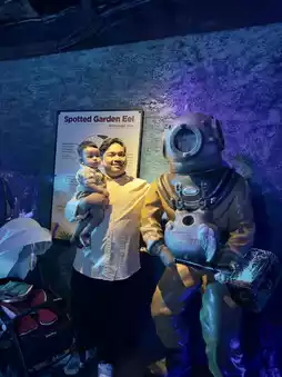 Raees was absolutely captivated by the colorful corals and fish swimming overhead — it felt like a gentle, interactive lullaby. It’s also quiet enough for babies to nap mid-visit!