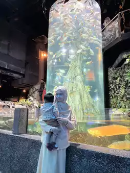 Baby Raees was hooked watching the ribbon eel slither like a moving ribbon of color. Itโs a great section for both children and adults to explore marine biodiversity in a fun and educational way. Truly eye-opening!