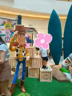 During my trip to Kuala Lumpur, I wandered into a mall and found myself in the middle of a colourful dreamland. Giant flowers in every shade surrounded playful setups, and right in the centre was Mickey Mouse striking a fun pose. Nearby, Woody from Toy Story stood tall, tipping his hat as if to greet everyone passing by.