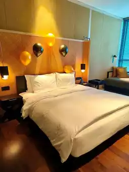 The RuMa Hotel in Kuala Lumpur is the perfect city-centre escape that blends luxury, comfort, and tranquility. Tucked away in the bustling KLCC area, this stylish retreat offers guests a peaceful hideaway without leaving the city. One of its standout features is the stunning outdoor oasis pool, surrounded by lush greenery and stylish cabanas that invite you to unwind in total relaxation.
