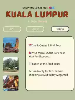• 🛍️ Visit Mitsui Outlet Park near KLIA for discounts