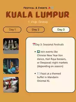 • 🎆 Join events like Chinese New Year lion dance, Hari Raya bazaars, or Deepavali night markets (depending on season)