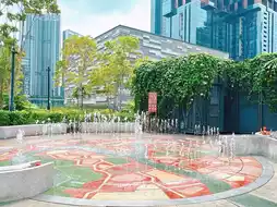 Kids can dash between wooden huts, peek out from “treehouse” towers, and challenge themselves on rope climbs while parents relax in the shade, surrounded by lush greenery and the KL skyline. Just a few steps away, the Water Play area keeps little feet cool with splashes and sprays, perfect for our Malaysian afternoons.