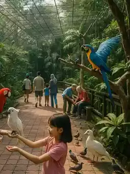 The sight of colorful parrots fluttering their wings as if in greeting was particularly impressive, and the sight of peacocks leisurely strolling by was truly picturesque ๐ฆโจ. The bird feeding shows, held at scheduled times, were also a hit with children and families.