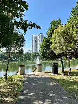 The park's large size meant there was little to no city noise, and the numerous rest areas and benches made it a great place to take a break after a leisurely stroll. The lakeside area is also beautiful for taking photos, and the reflection of the sky on the lake at sunset was truly breathtaking ๐