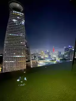 Komune Living offers many shared spaces. On Level 1, there’s a co-working space, game room with pool and ping pong, a kids’ play area, a community kitchen (reserve in advance), and a laundromat. Level 2 has more co-working and meeting spaces. The highlight is the rooftop on Level 29, with an infinity pool, gym, and sky deck offering stunning day and night views of Kuala Lumpur.