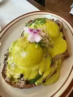 • The lunch menu also features brunch items like Eggs Benedict and Truffle Mushroom Spaghetti. However, some reviews noted that "the quality of the main menu isn't as consistent as that of the bread and desserts."