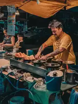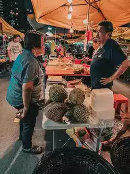 • Local favorites: satay, fried chicken, apam balik, grilled seafood.