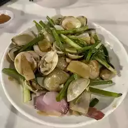 Fresh clams stir-fried with ginger and scallions, offering a rich seafood flavor with a hint of spiciness. The clam meat is plump and juicy, another winning dish π!