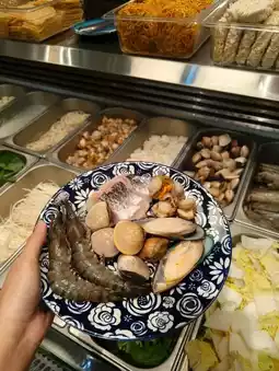 On my way to Desaru, I made a random stop for lunch and found this beautiful restaurant serving Nyonya steamboat buffet! The interior looked elegant yet cozy, with colorful Peranakan-style decor that immediately caught my attention.
