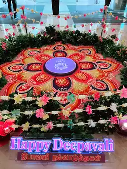Suria KLCC truly comes alive during Deepavali, with its breathtaking decorations capturing the spirit of the Festival of Lights. This year’s highlight is the grand kolam, beautifully crafted with vibrant colors and intricate designs that immediately draw your attention. Placed right at the heart of the mall, it’s more than just decoration—it’s a symbol of unity, culture, and celebration.