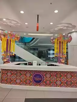 As Diwali approaches, NU Sentral transforms into a radiant celebration of light, tradition, and joy. The mall’s central atrium bursts with colour—vibrant kolam patterns bloom across the floor, surrounded by shimmering lanterns, golden arches, and floral garlands that dance with every breeze. The decorations are not just beautiful—they’re immersive, inviting visitors to pause, admire, and feel the warmth of the season.