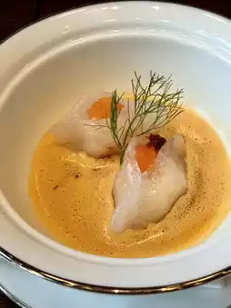 • Lobster Dumpling — Lobster dumpling in saffron sauce and chili oil.