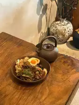 #kualalumpurguide Tucked away in the quiet folds of Ara Damansara, Shan Mu Cafe offers a serene escape from Kuala Lumpur’s bustle with its Ghibli inspired interiors and rustic wooden charm. The space feels like a gentle nod to Kyoto warm lighting, ceramic accents, and soft instrumental music set the tone for slow, thoughtful dining. Their Salmon Ochazuke is a standout: delicate flakes of salmon resting on steamed rice, bathed in a light tea based broth that’s both comforting and refined. Paired with a nutty Hojicha, the meal becomes a meditative experience.